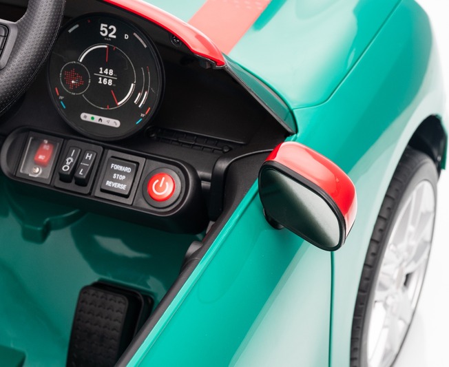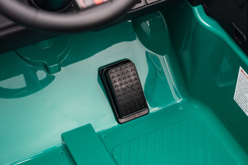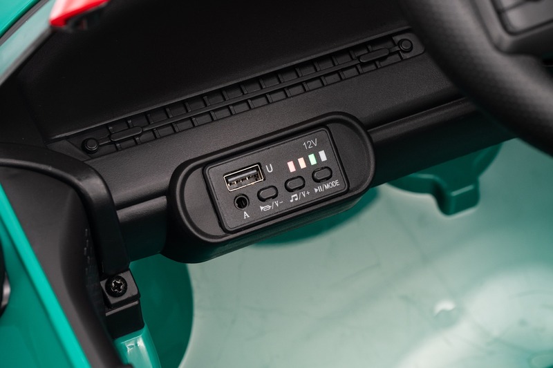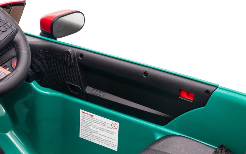 Multifunkčný volant - pre lahšie ovládanie medií a zvukových efektov ako klaksón Otváracie dvierka - s poistkou pre lahšie nastupovanie a vystupovanie z vozidla Autíčko má 2,4 GHz diaľkové ovládanie novej generácie, osvetlený vypínač a núdzovú brzdu, ktorá pri stlačení okamžite deaktivuje všetky funkcie vozidla. Auto má pohon oboch zadných kolies.