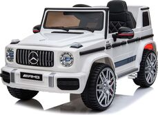 Elektrické autíčko Mercedes G, biele, Jednomiestné sedadlo, 12V batéria, 2,4 GHz DO, 2XMOTOR, USB, SD karta, ORGINAL licencia.