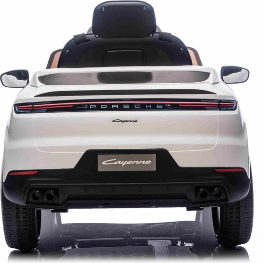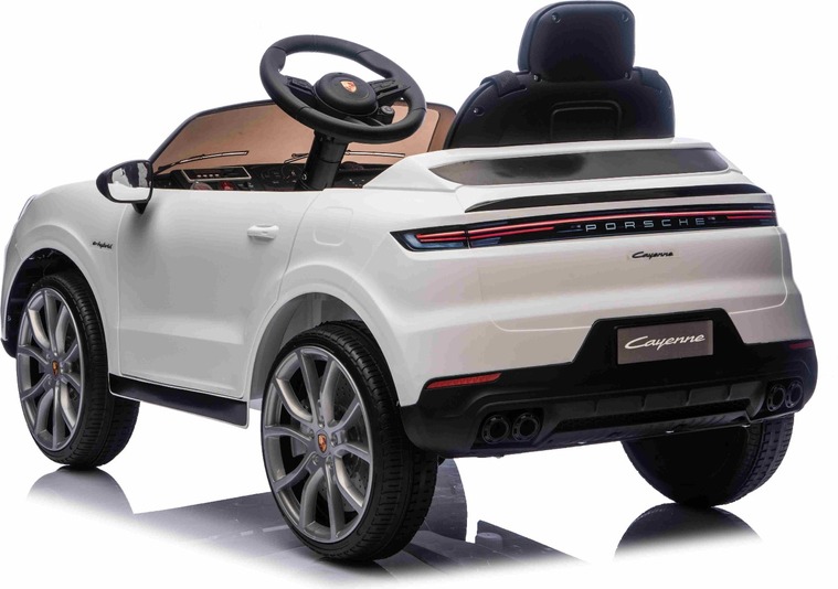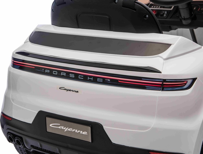Nechýbajú ani LED svetlá, ktoré autíčku dodávajú realistický vzhľad. Trojbodový bezpečnostný pás - Pre zvýšenú bezpečnosť dieťaťa. Multifunkčný volant - S tlačidlami na ovládanie klaksónu a prepínanie hudby. Balenie obsahuje: autíčko Porsche Cayenne, diaľkové ovládanie (2,4 GHz), nabíjateľnú lítiovú batériu 10.8V 5AH, nabíjačku s indikátorom nabitia (neprebíja batériu).