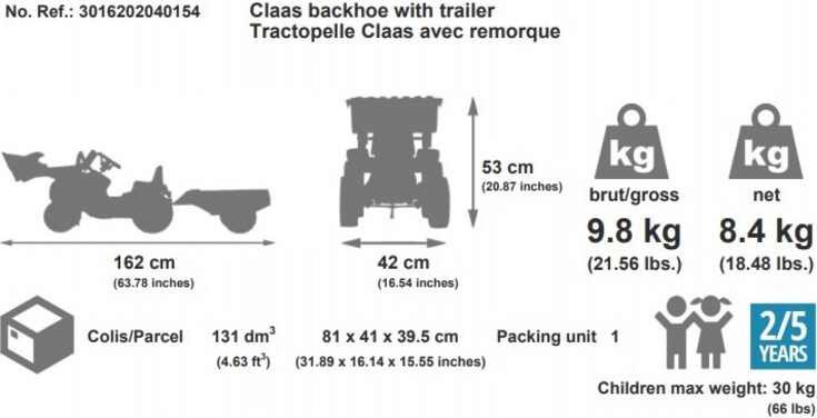 FALK Šliapací traktor 2040AM Claas Arion 410 s nakladačom a vlečkou, výrobca FALK.
