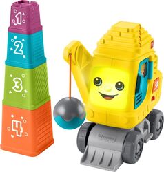 S Fisher-Price® Fun Crane Stack and Count si deti môžu vybudovať svoj vlastný svet hier. Tlačný žeriav rozpozná každý zo 4 očíslovaných blokov, takže keď ich naň vaše dieťa položí, aktivuje svetlá, zvuky a frázy. Týmto spôsobom sa učí čísla, počítanie, farby a tvary. Deti môžu tiež stlačiť tlačidlo hudby alebo otvoriť a zatvoriť dvierka nakuknutia a aktivovať viac svetiel a zvukov. Lopta chrastí a cvaká, čo obohacuje zmyslovú hru. Úsilie tlačenia a plazenia pomáha rozvíjať drobné svaly. Stlačením tlačidla vyberte jazyk: poľština, maďarčina, čeština, slovenčina alebo angličtina.