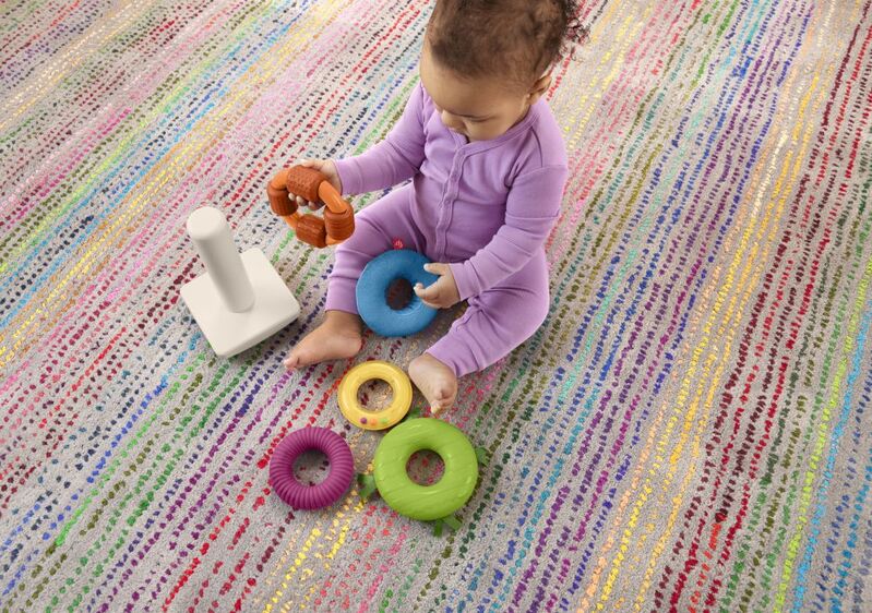 Každý krúžok prináša iné podnety: stužky, mäkký materiál, výrazné drážky, rozličné textúry a hrkajúce koráliky. Deti si užijú chytanie, stláčanie aj pretrepávanie.