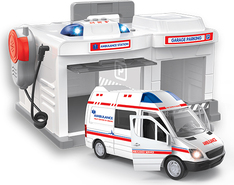 Obasuje stanicu s garážou, zvukové a svetlené efekty, kovový model vozidla Ambulance 1:32