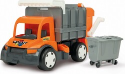 Hračka roka 2017! Realistické, 60 cm dlhé vozidlo s kontajnerom na odpad, ktorý sa dá pripevniť na zadnú časť vozidla, otváracími dverami batožinového priestoru a pohyblivým zdvihákom na vyprázdňovanie kontajnerov.