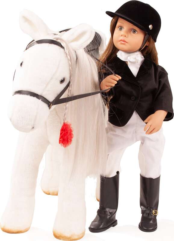 Götz biely poník Lipizzan na česanie a jazdenie pre bábiky 50cm