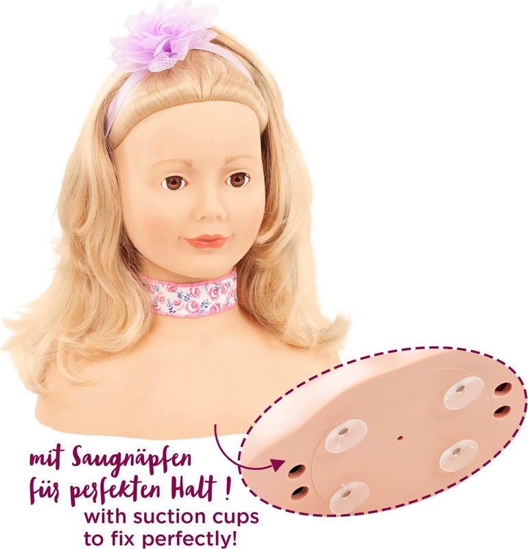 Stylingové hlavy GÖTZ majú na základni prísavky, aby sa pri úprave nešmýkali (funguje len na hladkých povrchoch).