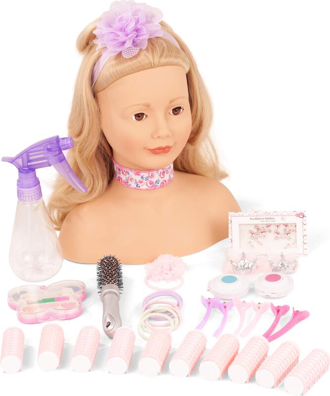 Dodáva sa so širokou škálou sponiek, gumičiek a líčidiel, ktoré vám poskytnú nekonečné možnosti. Večer, keď sa pred spaním umývate, vezmite svoju stylingovú hlavu so sebou, aby ste jej tiež odstránili make-up. Potom bude mať aj ona na noc čistú tvár. Táto bábika vám bude robiť radosť dlhé roky. Bavte sa!