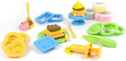 - 20 kusov: 3 tortovej pečiatky, 6 formičiek, 1 tuba na polevu, 1 tortový stojan, 1 tanier, 2 vidličky, 2 nože, 3 tuby s plastelínou: hnedá, žltá, ružová, plastelína vyrobená z organickej múky a potravinárskeho farbiva, vyrobené v USA