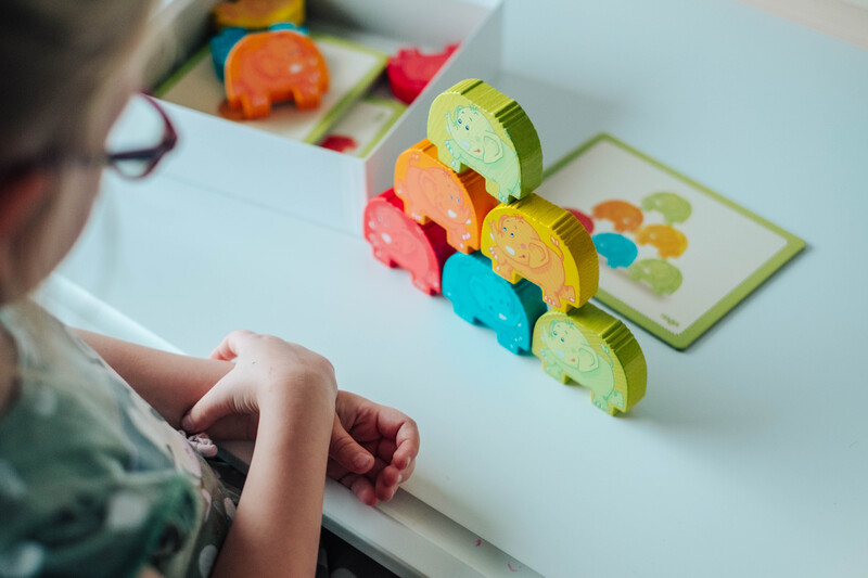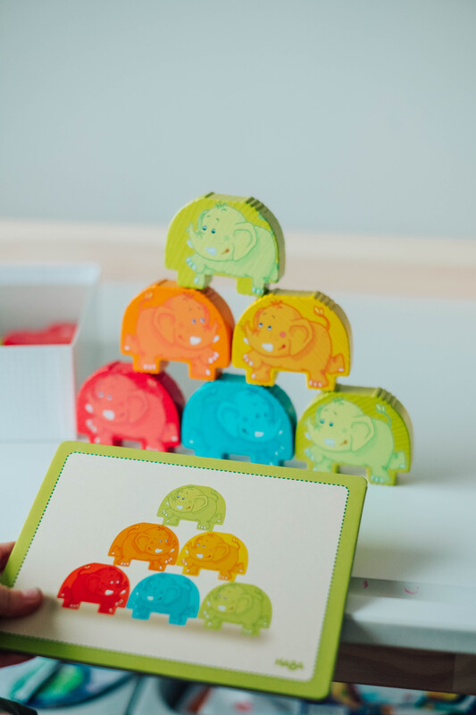 Motorická balančná hra – Sloníková veža je zábavná a poučná hračka pre deti od 2 rokov, ktorá rozvíja jemnú motoriku, koordináciu pohybov a trpezlivosť. Deti sa snažia poskladať sloníkov do veže tak, aby nespadli – podľa priložených šablón alebo vlastnej fantázie.