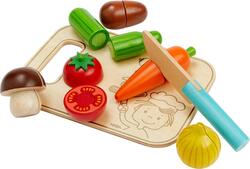 - Obsah: 1 uhorka, 1 mrkva, 1 zemiak, 1 huba, 1 paradajka, 1 cibuľa, 1 doska na krájanie, 1 drevený nôž