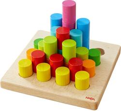 Na vrch dosky môžete umiestniť valce– alebo s nimi stavať veže! 30 farebných valcov je možné umiestniť do mriežky 4x4 podľa želania do 16 vopred vyrazených otvorov na doske. Ak ste trochu skúsenejší, môžete vyskúšať 10 obojstranných kariet šablón v 3 úrovniach obtiažnosti (v cene). To znamená, že už nie sú len umiestnené vedľa seba, ale aj naskladané na seba – a na rôznych úrovniach!