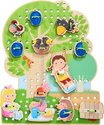 Zosúlaďovanie farieb a tvarov je skvelá zábava! Steny stodoly majú správny vchod pre každú figúrku. Aj prostredníctvom voľnej hry sa batoľatá zoznámia s hospodárskymi zvieratami a poskladajú ich na správne miesto v stajni. Drevené figúrky opäť vychádzajú cez pohyblivé dvere stodoly. Kompaktný drevený zásuvný domček možno ľahko prepravovať pomocou rukoväte.