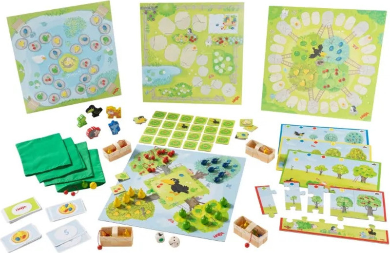 Soubor her – Ovocný sad (HABA) je bohatá kolekce 10 zábavných her inspirovaných oblíbeným světem drzého havrana Thea a jeho ovocného sadu. Hry jsou určeny pro 2–4 hráče ve věku od 3 do 6 let a nabízejí hodiny hravého učení i zábavy.