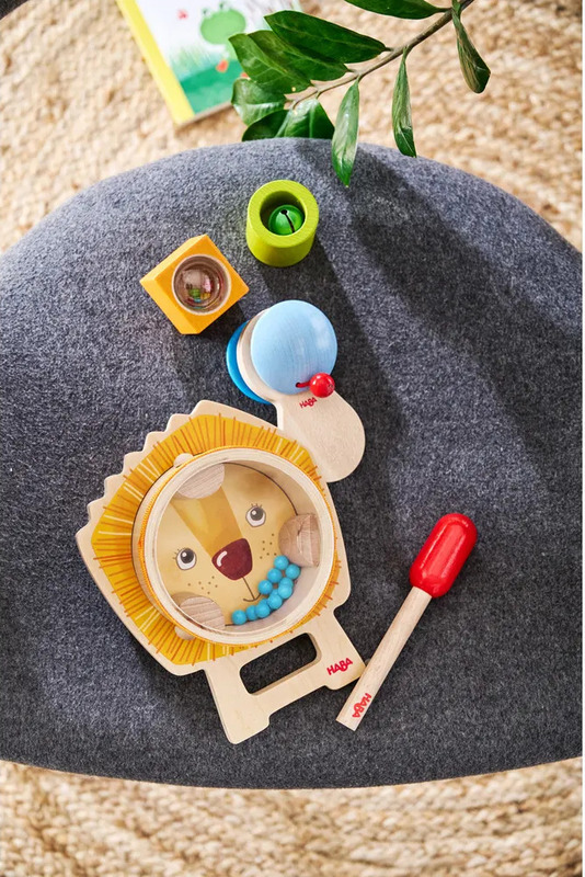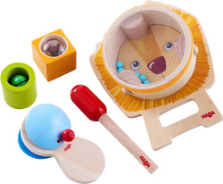 Sada je prispôsobená pre malé detské ruky a ponúka pestrú paletu zvukov, ktoré deti ľahko objavia pri hraní. Lví bubienok je centrálnym prvkom tejto sady – má až tri skvelé funkcie. Možno naň bubnovať prstami aj paličkou, chrastiace korálky vo vnútri ho premieňajú na maracas a hroty na jeho „hrive“ vydávajú zvuk podobný nástroju guiro. Bubienok má tiež praktickú rukoväť pre pohodlné držanie.