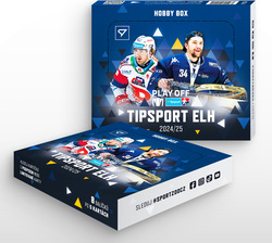 Hobby box hokejových kariet Tipsport ELH 2024/25 Play Off obsahuje 8 balíčkov po 5 kartičiek.Každý Hobby box obsahuje:
