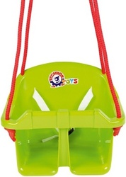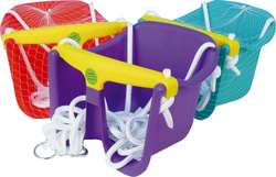 Detská hojdačka je vyrobená z pevného a odolného plastu. Hojdačka pre deti visí na pevnom lane a dieťa je pri hojdaní istené hrazdou, ktorú majú pred sebou. Hojdačka má zadné operadlo, popruhy na pripútanie a spredu medzinožnú istiacu zarážku. Pevné lano zaručuje odolnosť a výdrž.