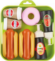 Tento zábavný Ecoiffier herný set obsahuje tácku s 2 veľkými hotdogmi, dezertom v podobe donutu a 2 kávovými pohárikmi na cesty.
