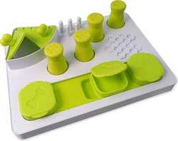 Hračka, ktorá premení aj krmenie na zábavu. Stimuluje mozgovú aktivitu vášho mazlíčka. Pomáha spomaliť rýchle jedáky – možné použiť ako protihltaciu misku. Návod na použitie Schovajte granule alebo maškrtu do hračky a nechte psa si užíť zábavu s hľadaním. Pes môže použiť labu alebo ňufák na posúvanie plastových štvorcov, ich otvorenie alebo nadvihnutie častí hračky a získať tak maškrtu.