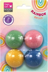 Hračka Magic Cat Rainbow Relax pozostáva zo štyroch penových loptičiek s priemerom 4 cm v rôznych farbách.