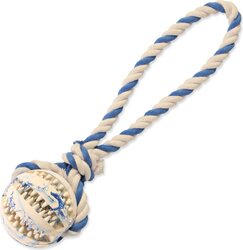 Hračka - preťahovadlo pre psy. Špeciálne drážky na loptičke masírujú ďasná a zároveň zabraňujú tvorbe zubného povlaku.