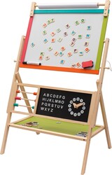 Drevená tabuľa pre deti 2v1 Montessori Baby MixObjavte novú radu Montessori hračiek od značky Baby Mix, ktorá vyniká precíznym spracovaním, moderným dizajnom a použitím kvalitných materiálov. Táto praktická vzdelávacia tabuľa z masívneho dreva oživí každú detskú izbu a poskytne hodiny kreatívnej a zmysluplnej zábavy. Multifunkčná edukačná hračkaMontessori tabuľa 2v1 je navrhnutá podľa princípov Montessori pedagogiky, ktorá podporuje rozvoj samostatnosti, kreativity a zmyslového vnímania. Deti si počas hry prirodzene osvojujú základné zručnosti a vedomosti formou hry. Tabuľa ponúka:- obojstrannú písaciu plochu – bielu magnetickú stranu na fixku a klasickú čiernu na kreslenie kriedou,- počítadlo s farebnými korálkami pre prvé matematické krôčiky,- drevené hodiny s pohyblivými ručičkami na nácvik času,- magnetické písmená a čísla na učenie abecedy a počítania,- praktickú rolu papiera na kreslenie pastelkami,- odkladaciu poličku na uloženie príslušenstva. Každý prvok je navrhnutý tak, aby zodpovedal schopnostiam malých detí a motivoval ich k objavovaniu sveta okolo seba. Špecifikácia:- Podporuje kreativitu, jemnú motoriku a logické myslenie.- Ponúka množstvo možností učenia hrou.- Vhodná pre deti od 3 rokov.- Stabilná a bezpečná konštrukcia z prírodného dreva. Rozmery tabule:- Výška: 106 cm- Šírka: 55,5 cm- Hĺbka: 40,5 cm