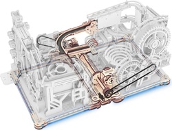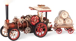 Skladačka parného stroja preverí Vaše konštruktérske schopnosti. Vytvorte si repliku jedného z prvých parných vozidiel v mierke 1:28. Parný stroj je vybavený miniatúrnym, ale účinným motorom dostatočne silným, aby poháňal vozidlo dopredu alebo dozadu aj s plným prívesom. Je vybavený manuálnou prevodovkou s tromi rýchlosťami, s možnosťou jazdy vpred (pomaly a rýchlo) alebo vzad. Má sklopnú slnečnú clonu, otočný volant a silikónové kolesá. Pripojte odpružený príves otočný o 120 ° a ste pripravení prepraviť svoj náklad kamkoľvek. V ohnisku a komíne sú umiestnené svetlá, aby napodobňovali proces spaľovania a z komína „vychádza“ dym. Špeciálne efekty umocnia dojem z prevádzky tohto atraktívneho a prepracovaného parného stroja. Spolu s parným strojom s prívesom je v balení aj dobová lampa a lavička. Stroj vyžaduje 2 kusy batérií AAA/LR03/AM4 1,5V, ktoré nie sú súčasťou balenia. Skladačka je dodávaná v nezloženom stave, zabalená v škatuli s podrobným návodom na zostavenie. Pozvite svoju rodinu alebo priateľov a užite si zábavné tvorenie bez nutnosti použitia lepidla alebo nástrojov. Všetky diely skladačky sú presne vyrezané, a ľahko do seba zapadnú, aby výsledok bol stabilný a odolný.  Hlavné vlastnosti: 469 dielikov doba skladania 7 hodín účinný motor manuálna prevodovka špeciálne efekty vysoká obtiažnosť zostavenia rozvíja logické a motorické zručnosti podporuje trpezlivosť detí ideálny ako darček alebo jedinečná dekorácia podrobný návod na zostavenie súčasťou balenia vyžaduje 2 kusy batérií AAA/LR03/AM4 1,5V - nie sú súčasťou balenia
