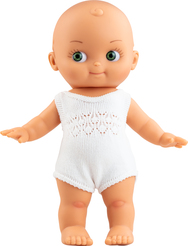 Mini Pancha v bielom očarí svojou jemnou kombináciou bieleho oblečenia a svetlého tónu pokožky. Je ideálna pre hru i objavovanie fantazijných príbehov, pričom podporuje kreativitu a jemnú motoriku detí. Kolekcia Mini Panchas od Paola Reina predstavuje roztomilé bábiky s výškou približne 28 cm, ktoré sú ideálne pre malé detské rúčky. Sú vyrobené z kvalitného vinylu, čo im zabezpečuje odolnosť a príjemný dotyk. Dostupné sú v rôznych farbách kombinovaných s modrými alebo zelenými očami, čo pridáva na ich šarmu. Tieto bábiky podporujú rozvoj predstavivosti a emocionálnych schopností detí, pričom ich pohlavie je neutrálnym, čo umožňuje širokú škálu hier a príbehov. Sú navrhnuté a vyrobené v Španielsku, čo zaručuje vysokú kvalitu a remeselnú precíznosť.. Značka Paola Reina už desaťročia tvorí bábiky, ktoré prinášajú deťom radosť, sny a kúzlo hry. Každá bábika vzniká v španielskom Onile – kolíske hračiek od roku 1870 – a nesie v sebe spojenie tradičného remesla a modernej technológie.Bábiky sú vyrobené zo zdravotne nezávadného vinylu bez ftalátov, s jemnou vanilkovou vôňou a precíznymi detailmi od očí až po šaty. Vďaka tomu sa stávajú nielen hračkou, ale aj spoločníkom, ktorý podporuje detskú predstavivosť, emócie a sociálne zručnosti. UPOZORNENIE: Nie je vhodné pre deti mladšie ako 3 roky, pretože obsahuje malé časti. V súlade s bezpečnostnými predpismi EEC EN71 / ASTM F963. Originálny produkt, jeho reprodukcia je zakázaná. Tento obal si uschovajte ako právny dôkaz pôvodu produktu. Pred odovzdaním bábiky odstráňte všetky upevňovacie prvky z dôvodu bezpečnosti. (BEZ FTALÁTOV) Informácie o výrobcovi: MUNECAS PAOLA S.L.Calle Jaime I, 22,03430 Onil (ALICANTE) Španielsko Email:info@paolareina.com