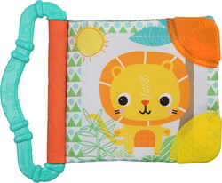 Textilná knižka je vhodná od 3 mesiacov. Na stránkách plných dobrodružstiev sú farebné obrázky a vzory, ktoré stimulujú zrak. Šustiace stránky a rôzné druhy materiálov lákajú dieťatko ku skúmaniu. Knižka má na ľavej strane zvlnenú hryzačku- držiak na na ktorej sú dva krúžky, ktoré po zatrasení hrkajú, zároveň pomáhajú pri prerezávaní zúbkov upokojiť ďasná.