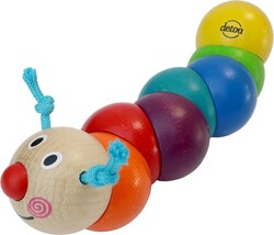 Hračka z farebných drevených perlí navlečených na gume, vhodná na precvičovanie jemnej motoriky rúkVašich detí už od 6 mesiacov.