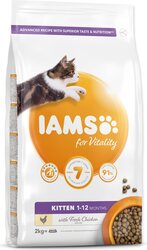 Krmivo IAMS for Vitality pre mačiatka je 100% kompletné a vyvážené, odborníkmi zostavené krmivo, ktoré bude zvieraťu chutiť a svedčiť. Naša nová a vylepšená receptúra pre mačiatka s čerstvým kuracím mäsom je založená na kvalitných živočíšnych bielkovinách starostlivo vybraných tak, aby podporovali sedem znakov zdravej vitality mačiatok. Aby boli mačiatka zdravá, aktívna a plná energie, obsahujú naše lahodné receptúry až 91 % živočíšnych bielkovín (z celkového obsahu bielkovín). Našim záväzkom je ponúknuť mačiatkam špecializované krmivo so skvelou chuťou, ktoré si váš domáci maznáčik bezvýhradne zamiluje a ktoré bude podporovať všetkých sedem znakov zdravej vitality. Mačiatko vyživuje potrebnými minerálmi a vitamínom D pre pevné kosti a svaly a zdravý rast. Vďaka receptúram s omega-3 a omega-6 mastnými kyselinami budete môcť obdivovať jeho zdravú kožu a lesklú srsť. A keď ho budete počuť chrúmať naše granule s vyváženým obsahom minerálov v každom súste, môžete si byť istí, že bude mať silné a zdravé zuby. Tráviacu sústavu podporujeme kombináciou vlákniny, prebiotík a repnej dužiny. Pripravte sa na to, že bude skákať a vyčíňať. To vďaka kombinácii antioxidantov v podobe vitamínov C a E, ktoré posilňujú imunitu, a taurínu a kyseline DHA, ktoré prispievajú k zdravému zraku a vývoju mozgu. Aby naše krmivo mačiatku chutilo, pridali sme doň čerstvé kuracie mäso a jeho stráviteľnosť uľahčili optimálnym množstvom bielkovín na mieru prispôsobeným jeho potrebám. Krmivo IAMS podporuje sedem znakov zdravej vitality, ktoré na svojom zvierati budete s radosťou pozorovať každý deň. Kŕmny návod: viď tabuľka na obale.