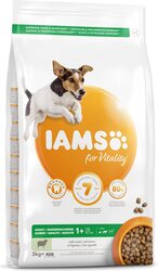 Krmivo IAMS for Vitality pre dospelých psov malých a stredných plemien je 100% kompletné a vyvážené odborníkmi zostavené krmivo, ktoré bude vášmu zvieraťu chutiť a svedčiť. Naša nová a vylepšená receptúra ??pre dospelých psov s jahňacím mäsom je založená na kvalitných živočíšnych bielkovinách, ktoré boli starostlivo vybrané, aby podporovali sedem znakov zdravej vitality psa. Aby bol váš pes zdravý, aktívny a plný energie, obsahujú naše lahodné receptúry až 80% živočíšnych bielkovín (z celkového obsahu bielkovín).