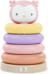 Pyramída a super roztomilá sovička Nally sa dodávajú so stojanom z umelého dreva a 4 farebnými, ľahkými prstencami s viacerými textúrami bez obsahu BPA, ktoré sa bábätku ľahko držia a stohujú.