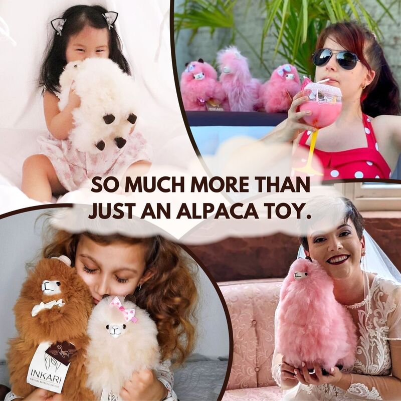 Alpaky Inkari si zamilujete na prvý dotyk – sú neuveriteľne mäkké, ručne vyrábané a plné jedinečného peruánskeho čara. Každá jedna vzniká z prírodnej alpačej vlny, ktorá je jemnejšia než kašmír a hypoalergénna, takže je ideálna pre deti aj dospelých. Okrem nádherného vzhľadu nesú aj silný príbeh udržateľnosti a podpory lokálnych remeselníkov z Ánd – preto sú oveľa viac než len plyšové hračky.