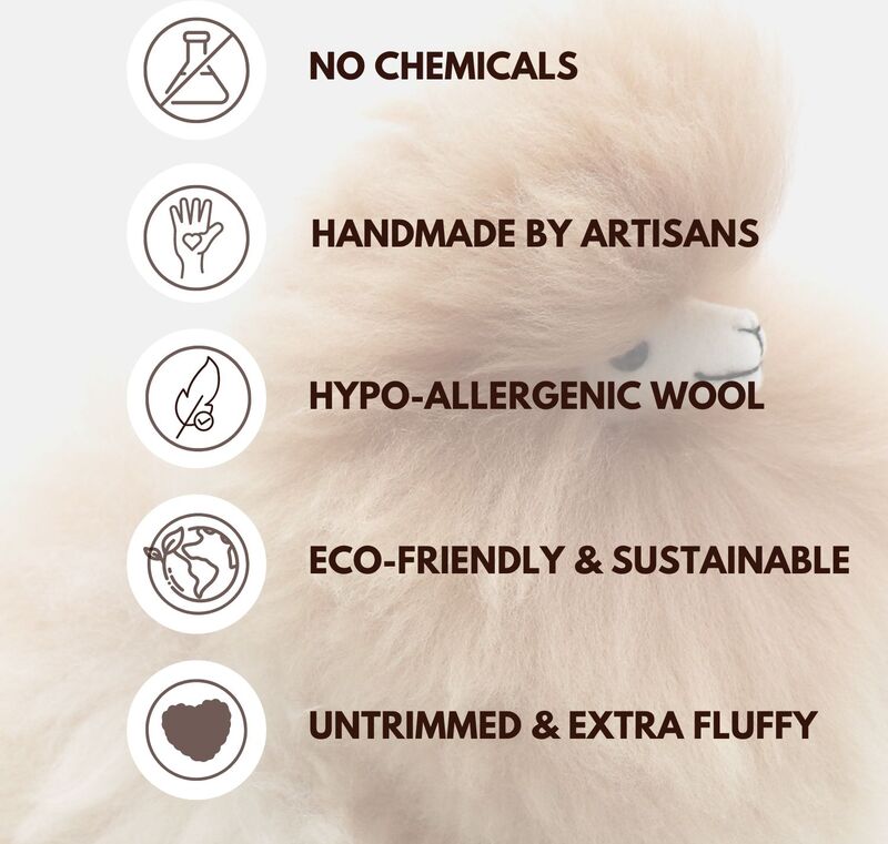 Alpaky Inkari si zamilujete na prvý dotyk – sú neuveriteľne mäkké, ručne vyrábané a plné jedinečného peruánskeho čara. Každá jedna vzniká z prírodnej alpačej vlny, ktorá je jemnejšia než kašmír a hypoalergénna, takže je ideálna pre deti aj dospelých. Okrem nádherného vzhľadu nesú aj silný príbeh udržateľnosti a podpory lokálnych remeselníkov z Ánd – preto sú oveľa viac než len plyšové hračky.