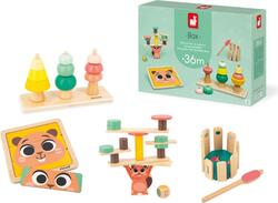 Janod Box sa skladá zo 4 boxov (12 mesiacov, 18 mesiacov, 24 mesiacov, 36 mesiacov), ktoré boli navrhnuté tak, aby ponúkli vášmu dieťaťu hračky prispôsobené jeho vývoju podľa jeho veku.
