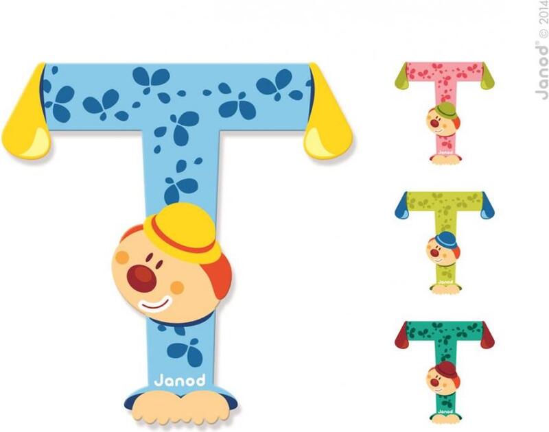 Drevené písmeno T Janod lepiace 9 cm zelené/ružové/modré/tyrkysové
