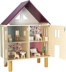 - Domček má magnetické dvere, ktoré sa doširoka otvárajú na hranie a potom sa zatvárajú, aby sa všetko vo vnútri uložilo pre ľahkú prepravu.