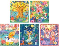 3 predrezané kartónové dosky, 2 predrezané listy papiera, 1 predrezanú plstenú dosku, 1 list krepového papiera, 1 tubu lepidla, 1 svetelnú girlandu (vrátane batérií), 2 sklenené fľaštičky , 1 tabuľka kamienkov, 1 samolepiace zrkadlo, 10 perlových perál, 10 bielych perál, 10 fazetovaných perál, zlatá šnúrka, 1 terakotový črepník