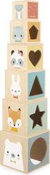Janod Pure Skladacia drevená pyramída Zvieratká 6 ks