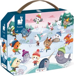 Janod Puzzle v kufríku Party na snehu 36 ks