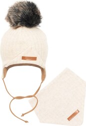 Jesenná dojčenská čiapočka so šatkou na krk New Baby Special One béžová 68 (4-6m)