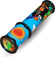Kaleidoskop - objavovanie optických javov, ktorá pomocou sústavy zrkadielok a farebných teliesok vytvára neopakovateľné obrazce oproti svetlu. Je možné ním otáčať, čím sa drobné farebné telieska preskupujú a dochádza k zmene tvarov obrazcov.Rozmer: 20 x 5cm