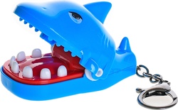Plastový žralok, rozmery 7,5x5x5cm, tlama žraloka sa otvorí a keď narazí na príslušný zub, zatvorí sa zahryznutím do prsta.