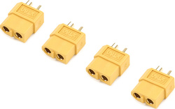 Pozlátený konektor XT-60 prístroj (samec) s plastovým krytom. Balenie obsahuje 4 kusy.