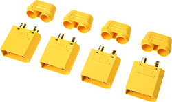 Konektor pre elektroniku so pozlátenými kontaktmi, typu XT-90H prístroj (samec), s krytom spájkovaných kontaktov. 4 ks v balení.