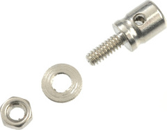 Konektor tiahla nastaviteľný mikro (5 ks). Priemer 3,5mm, dĺžka 8,5mm, závit M1,5, otvor v tele priem. 1,5mm. Poistná skrutka M2. K páke tiahla sa pripevní na závit s maticou, oceľový drôt tiahla sa nasunie do otvoru v tele konektora a poistí sa skrutkou.