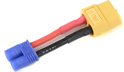 Konverzný kábel s konektormi EC2 prístroj (samec) - XT-60 batérie (samica), kábel 14AWG.