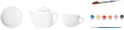 - kanvičku s pokrievkou, 2 hrnčeky a 2 podšálky., sadu 6 farieb, štetec.