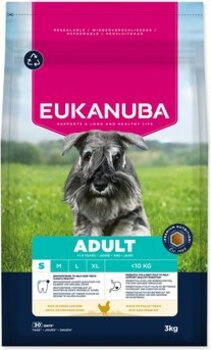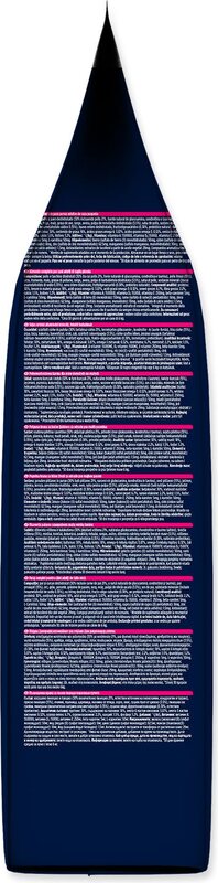 Superprémiové kompletné krmivo pre dospelé psy stredných plemien (10 – 25 kg). Hypoalergénna receptúra s jahňacím mäsom a ryžou. Podpora imunity - Probiotiká podporujú rast pozitívnych baktérií v čreve a tým celkovo stimulujú a podporujú prirodzenú imunitu organizmu. Pestrec podporuje zdravie pečene a zbavuje telo toxínov. Podpora zdravia srsti a pokožky - Lososový olej a rakytník sú výborným zdrojom mastných kyselín a prirodzených antioxidantov potrebných pre harmonizáciu, ochranu a perfektný vzhľad pokožky a srsti Podpora zdravia srsti a pokožky - Lososový olej a rakytník sú výborným zdrojom mastných kyselín a prirodzených antioxidantov nevyhnutných pre ochranu a perfektný vzhľad pokožky a srsti. Podpora telesnej kondície - Jahňacie obsahuje vyvážený pomer esenciálnych aminokyselín, ktoré prispievajú k udržaniu perfektnej kondície svalov a tkanív. Nízky obsah tuku podporuje skvelú kondíciu bez rizika priberania. Podpora telesnej kondície - Jahňacie obsahuje vyvážený pomer esenciálnych aminokyselín, ktoré prispievajú k udržaniu perfektnej kondície svalov a tkanív. Nízky obsah tuku podporuje skvelú kondíciu bez rizika priberania. Zloženie Dehydrované jahňacie (40%), ryža (35%), sušená jablčná dužina, kurací tuk, prírodná aróma, pivovarské kvasnice, lososový olej (2%), hrachová múka, glukosamín (260 mg/kg), frukto-oligosacharidy (200 mg /kg), chondroitín sulfát (200 mg/kg), mannán-oligosacharidy (150 mg/kg), juka schidigera (150 mg/kg), semená pestreca mariánskeho (90 mg/kg), ß-glukány (50 mg/kg) ), sušený srdcovník (50mg/kg), sušený rakytník rešetliakový (50 mg/kg), probiotiká Lactobacillus helveticus HA – 122 inaktivované (15x109 buniek/kg). Analytické zložky Hrubý proteín 26,0%, hrubý tuk 16,0%, vlhkosť 10,0%, hrubý popol 7,2%, hrubá vláknina 2,5%, vápnik 1,4%, fosfor 1,0%, sodík 0,4 %, omega-3 mastné kyseliny 0,5%, omega-6 mastné kyseliny 1,9%, EPA (20:5 n-3) 0,05%, DHA (22:6 n-3) 0,1%. Nutričné zloženie Vitamín A (3a672a) 20000 IU, vitamín D3 (3a671) 1500 IU, vitamín E (3a700) 500 mg, vitamín C (3a312) 300mg, taurín (3a370) 1500 mg, cholínchlór 3a910) 250 mg, vitamín B1 (3a821) 2,5 mg, vitamín B2 (3a825i) 9,6 mg, biotín (3a880) 3,5 mg, kyselina listová (3a316) 1,2 mg, vitamín B6 (3a831) 2 ,5 mg, D-pantoténán vápenatý (3a841) 25 mg, niacínamid (3a315) 32,5 mg, vitamín B12 0,1 mg, jód (3b201) 0,8 mg, organický zinok (3b606) 85 mg, organický 3b504) 40 mg, organická meď (3b406) 18 mg, organické železo (3b106) 75 mg, organický selén (3b810) 0,16 mg. Obsahuje antioxidanty schválené EÚ: tokoferolové extrakty z rastlinných olejov (1b306(i)), askorbyl palmitát (1b304) a výťažok z rozmarínu. Metabolizovateľná energia: 3 810 kcal/kg.