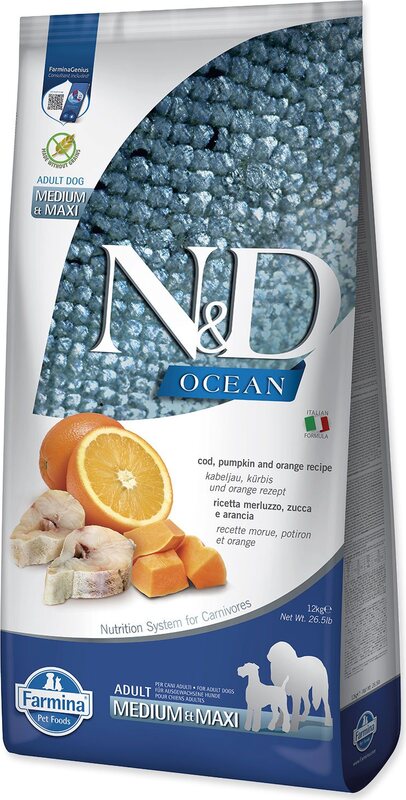 Krmivo N&D Dog Ocean Adult Medium & Maxi Codfish, Pumpkin & Orange 12kg
